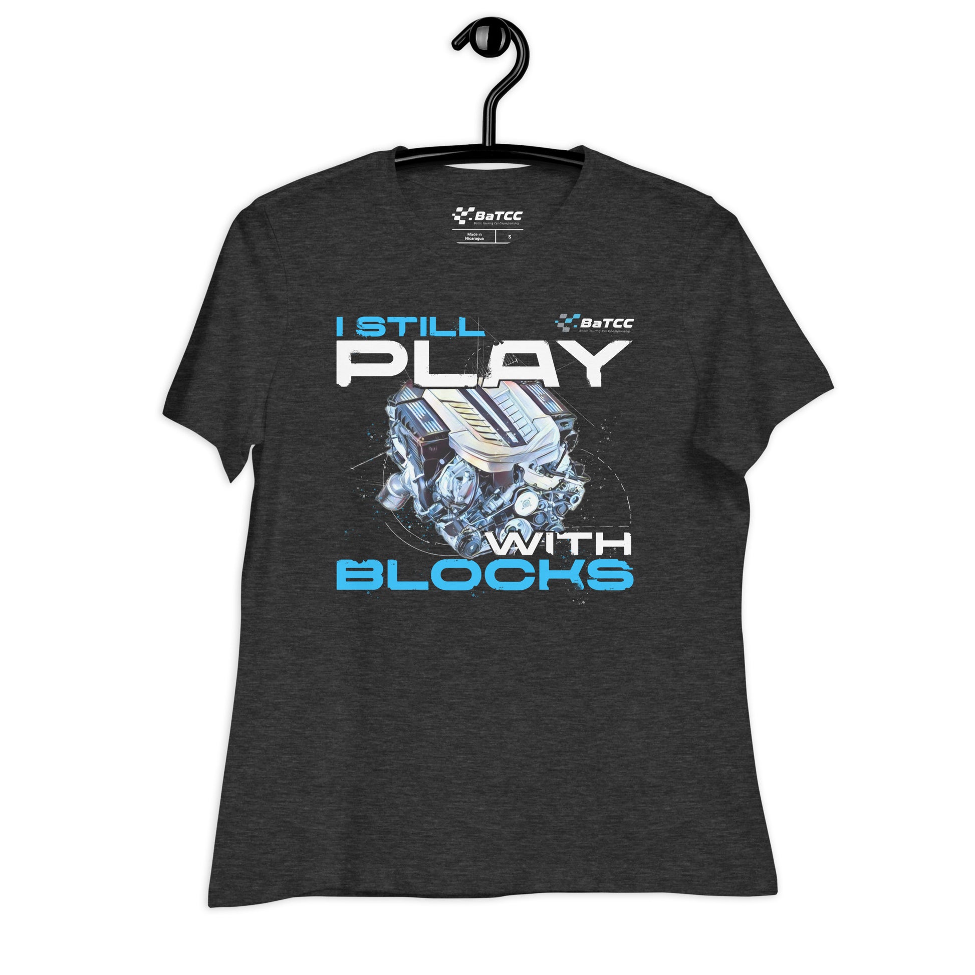 Show off your love for engines with our Womens 'I Still Play with Blocks' T-Shirt, designed for female car enthusiasts and gearheads. This stylish tee features a bold engine design paired with playful text, made from soft, high-quality fabric for all-day comfort. Perfect for car shows, race days, or casual wear, it's a fun and fashionable way to express your passion for cars and engines. Available in various sizes and colors. Celebrate your horsepower love with this chic tee!